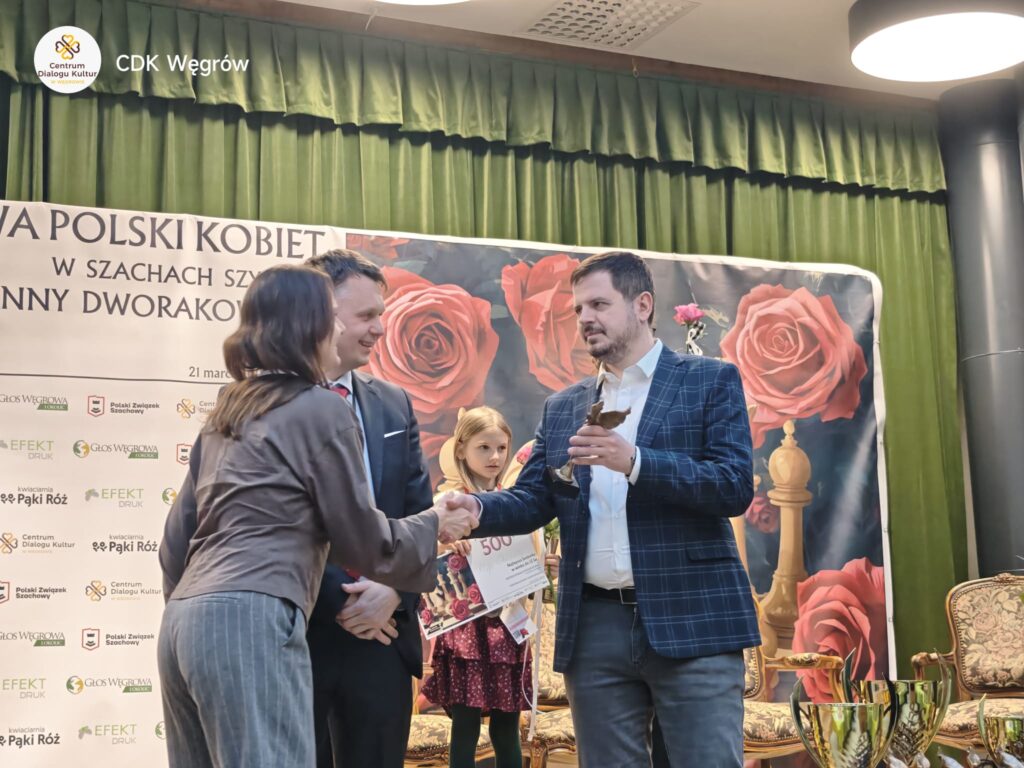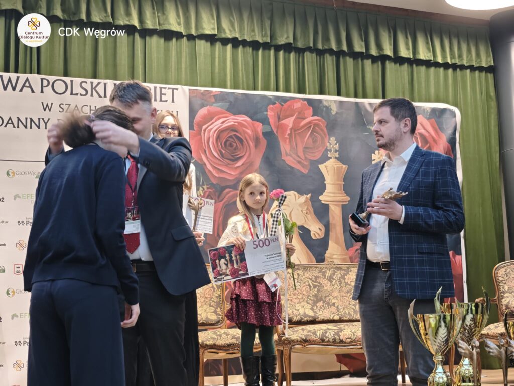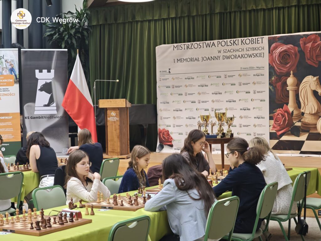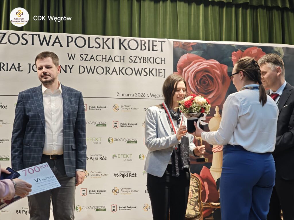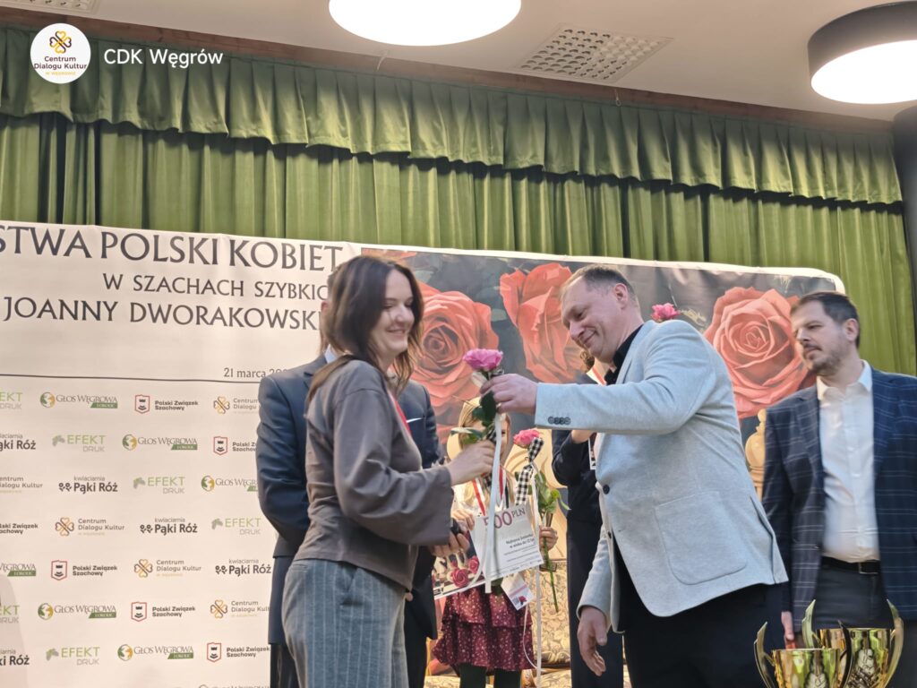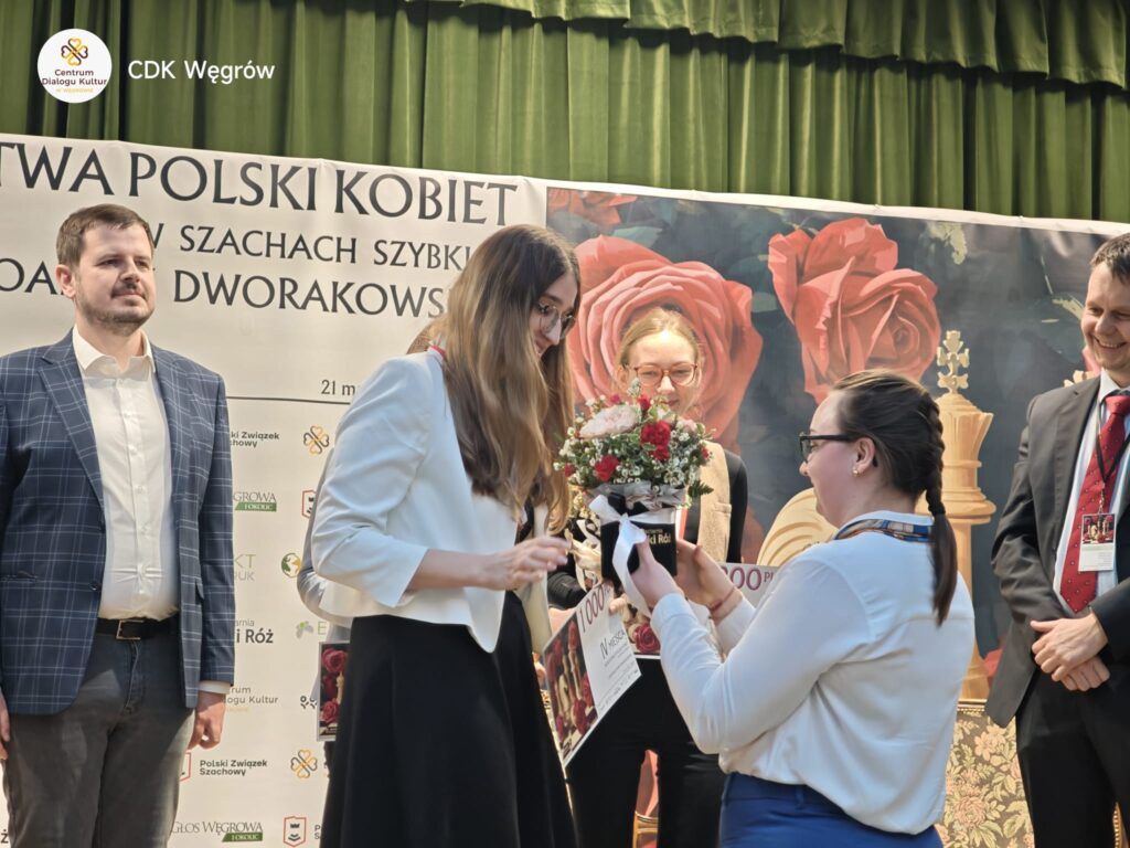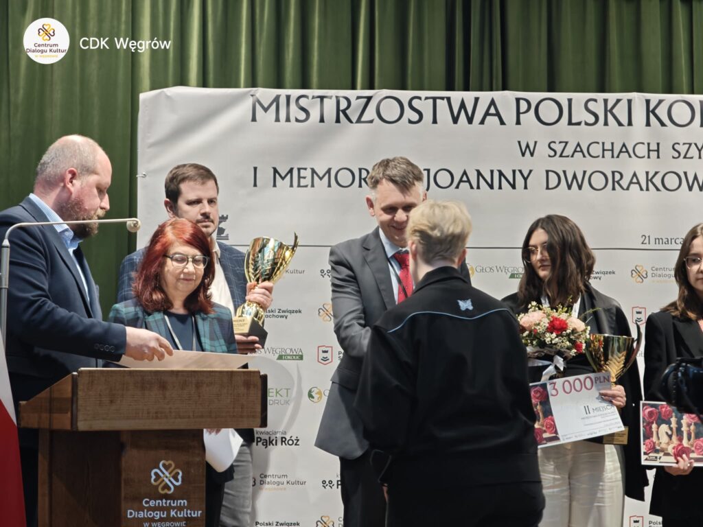 Dzisiaj odbyły się Mistrzostwa Polski Kobiet w Szachach Szybkich – I Memoriał Joanny Dworakowskiej, którego organizatorem był KS Gambit Niedźwiedzia. Do Węgrowa przyjechała bardzo utalentowana grupa zawodniczek z całej Polski, które mają już na swoim koncie znaczące sukcesy. Poniżej przedstawiamy listę laureatów, którym medale, puchary oraz nagrody wręczył min. Radosław Jedynak – Prezes Polski Związek Szachowy: